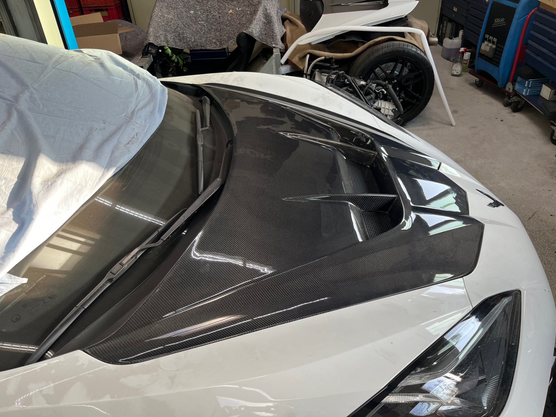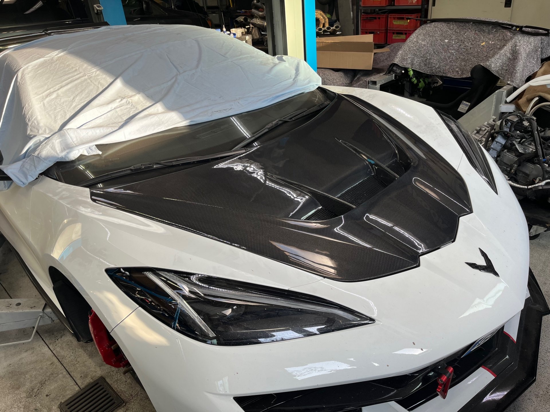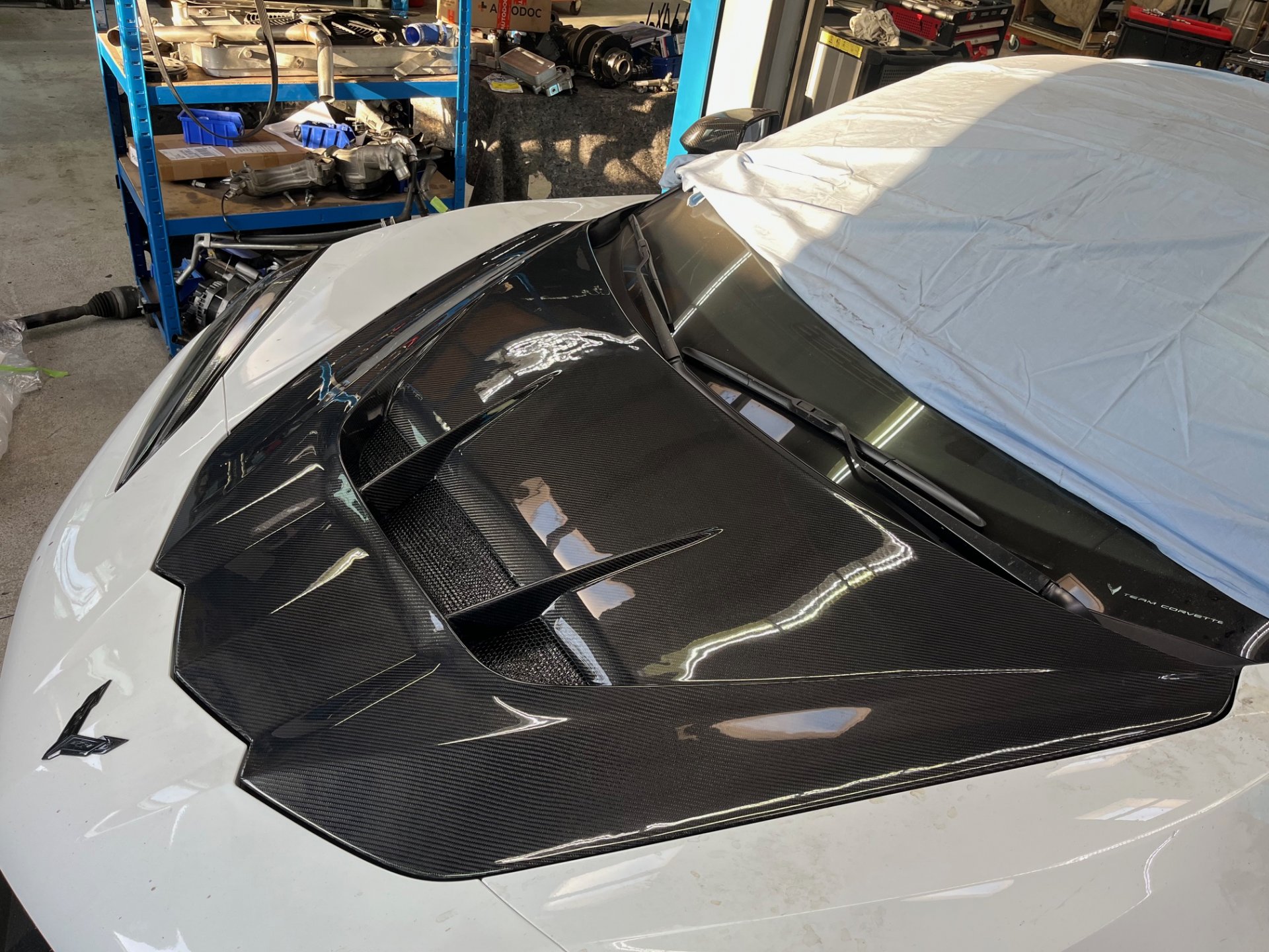 Die Haube ist auch für Fahrzeuge mit Z06-Umrüstoptik grundsätzlich geeignet, da die Mehrbreite über Kotflügel/Bodywork entsteht – nicht über die Haubengeometrie.